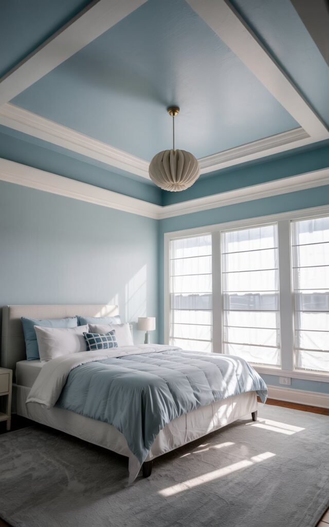 Give your ceiling a fresh look with a faux tray effect by painting the edges a darker shade than the center.