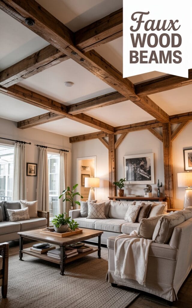These beams are lightweight and easy to install, making them a perfect DIY project. Choose from various styles like reclaimed wood or smooth finishes to match rooms like living rooms or bedrooms.